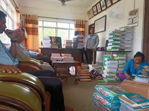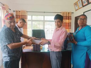 उदयपुरको चौदण्डीगढी नगरपालिका वडा नम्बर ९ ले वडामा रहेको सामुदायिक बिद्यालयका लागि शैक्षिक सामाग्री खरिद गरेर विपन्न बिद्यार्थीहरुलाई वितरण रहेको छ । आज ज्यामिरेस्थित वडा कार्यालयमा बिद्यालयका शिक्षक, अभिभावकको उपस्थितीमा बिद्यार्थीलाई कापी, ज्यामिती बक्स र सिलेट वितरण गरेको हो । वडा सचिव पुष्कल राईका अनुसार वडा कार्यालयले जनता मावी हडिया, सिद्धेश्वरी मावी मुसहर्नीया, भगवती मावी मुसहर्नीया, थान पोखरी मावी ज्यामिरे र जनविकास मावि भिमाका कक्षा ६ देखी कक्षा १० सम्मका १ सय जना बिद्यार्थीलाई जनही १४ थान कापी र ज्यामिती बक्स वितरण गरेको छ भने वालमुखी आधारभुत बिद्यालय अजगडा, जनज्योति आधारभुत बिद्यालय ज्यामिरे र जनबिकास आधारभुत बिद्यालय भिमाका वालविकास कक्षामा अध्ययनरत ७० जना वालवालिकालाई सिलेट वितरण गरेको छ । वडा सचिव राईका अनुसार वडाको आर्थिक बर्ष २०८०/८१ को अजगडा नाली निमार्ण शिर्षकको योजनालाई संसोधन गरेर एक लाख १५ हजार रुपैयाँले सामुदायिक बिद्यालयको लागि शैक्षिक सामाग्री खरिद शिर्षकबाट बैशाख २२ गते बसेको वडा समितिको बैठकबाट विपन्न बिद्यार्थीलाई कापी, ज्यामिति बक्स र सिलेट खरिद गरी वितरण गर्ने निर्णय भएअनुसार शैक्षिक सामाग्री वितरण गरिएको हो ।