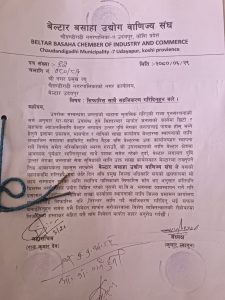 गत असोज १९ गते उदयपुरको चौदण्डीगढी नगरपालिका र बेलका नगरपालिकाका नगर प्रमुखबीच भएको दुबै पालिकालाई पायक पर्ने गरी चौदण्डीगढी नगरपालिकाको वडा नं. ४ बर्षेडाँडामा ईलाका प्रशासन कार्यालय स्थापना गर्न सम्बन्धित निकायमा माग गर्ने निर्णय गरिएपछि चौदण्डीगढी नगरपालिकाको बेल्टार बजारका उद्योगी, ब्यापारी, ब्यबसायीहरुमा तरंग पैदा भएको छ । उनीहरुले यस निर्णय प्रति असन्तुष्टी जनाउदै आज चौदण्डीगढी नगरपालिकाका नगर प्रमुख कालुमान लामालाई भेटेर ईलाका प्रशासन कार्यालय बेल्टारमा स्थापनाका निम्ति सिफारिसका साथै सहजिकरण गरिदिन माग गरेका छन् । बेल्टार बसहा उद्योग बाणिज्य संघका अध्यक्ष कुमार ल्वागुनको नेतृत्वमा बेल्टार बजारका पुराना ब्यापारी, समाजसेवी, बुद्धिजीवि लगायतको टोलीले नगर प्रमुख लामालाई भेटेर ज्ञापन पत्र बुझाउदै संघले गरेको पहलकदमीमा साथ दिन आग्रह गरेका छन् ।
