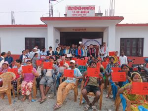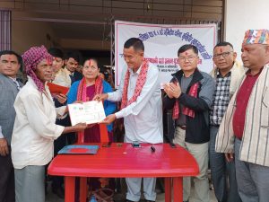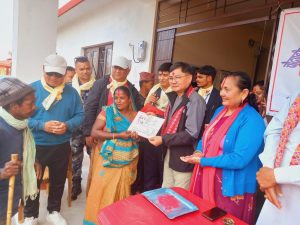 चौदण्डीगढी नगरपालिका वडा नम्बर २ स्थित झोडापाटा र चारघरे बस्तीका २८ घर भूमिहिन दलित , भूमिहीन सुकुम्बासीलाई लालपुर्जा वितरण गरिएको छ । हिजो झोडापाटास्थित वडा नम्बर २ को कार्यालय परिसरमा वडा कार्यालयको समन्वय र नगरपालिकाको आयोजनामा भएको भुमीहिन दलित, भुमिहिन सुकुम्बासीका लागि निशुल्क जग्गाधनी दर्ता प्रमाणपुर्जा वितरण कार्यक्रममा २ नम्बर वडाका २८ घर भूमिहिन दलित , भूमिहीन सुकुम्बासी परिवारलाई अधिक्तम एक कठ्ठा जग्गा हुनेगरी लालपुर्जा वितरण गरिएको हो ।